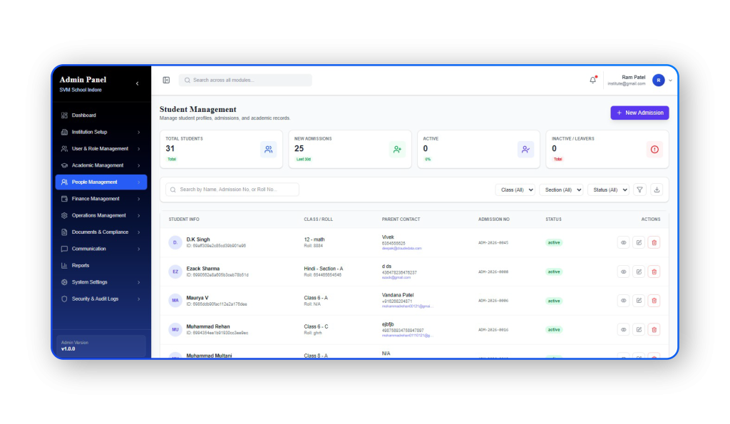 The platform improves efficiency, reduces manual work, and helps institutions maintain organized records and smooth communication.