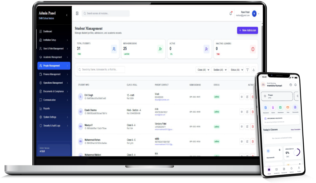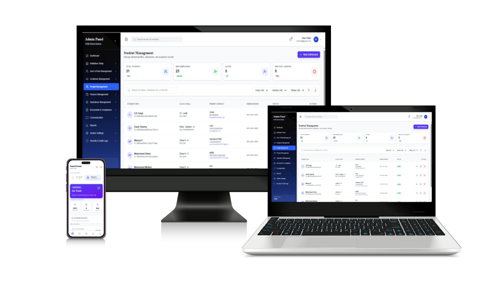Manage students, teachers, attendance, communication, fees, and academic activities in one powerful and easy-to-use platform.